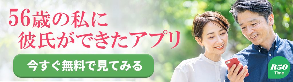 R50Timeは中高年特化型のマッチングアプリ。50代以上の方が気軽に利用できるサービスです。